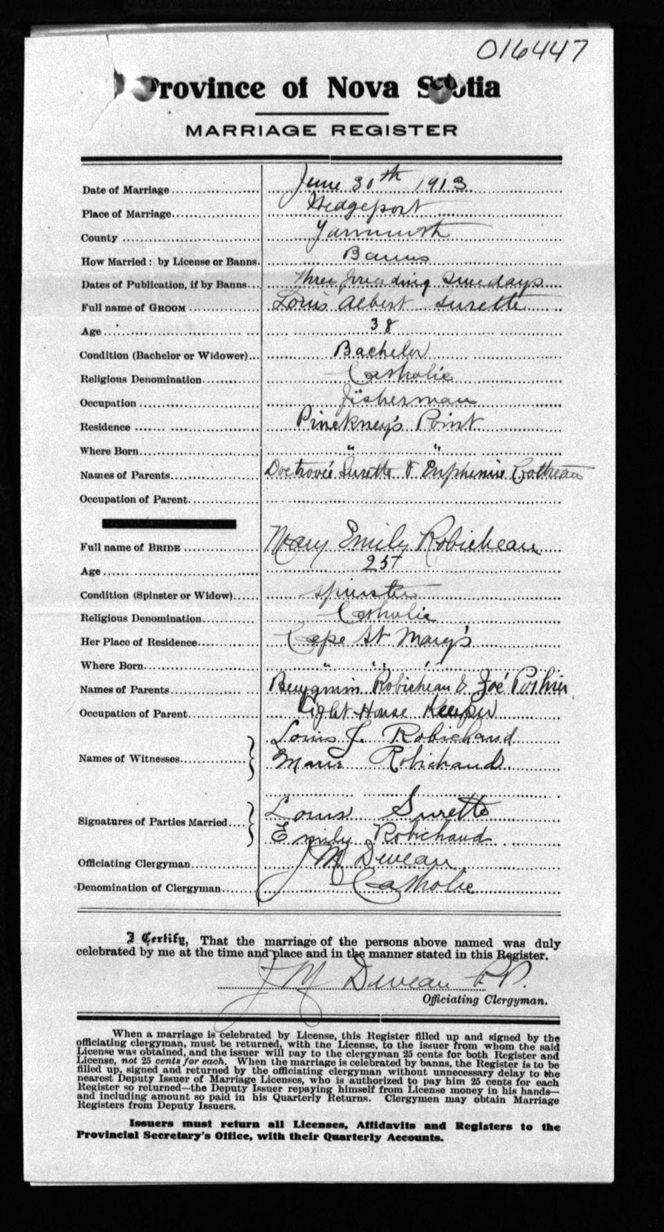 Registration: Year: 1913 number: 16447