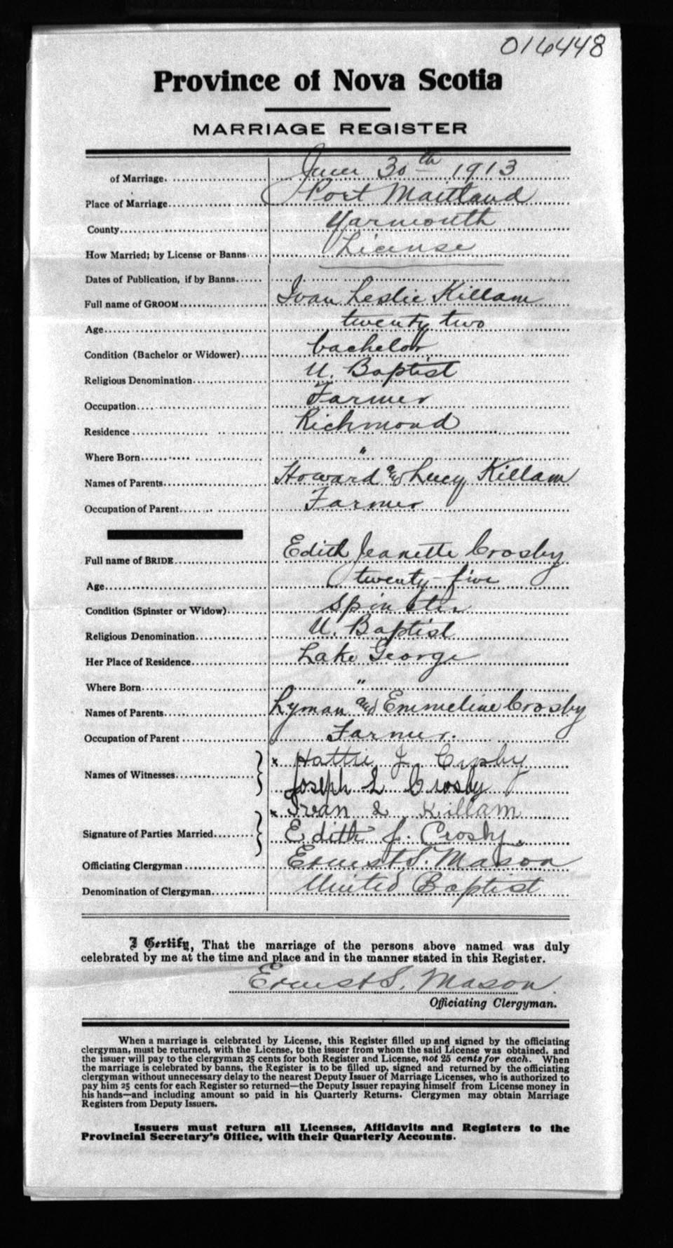 Registration: Year: 1913 number: 16448