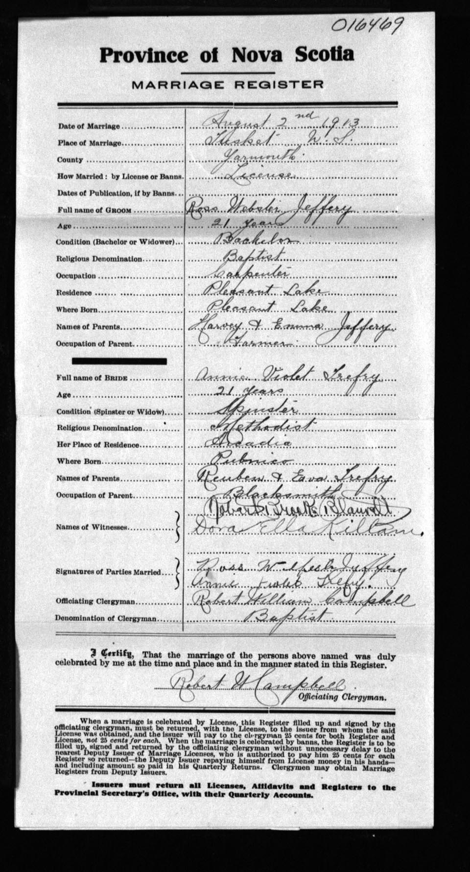 Registration: Year: 1913 number: 16469