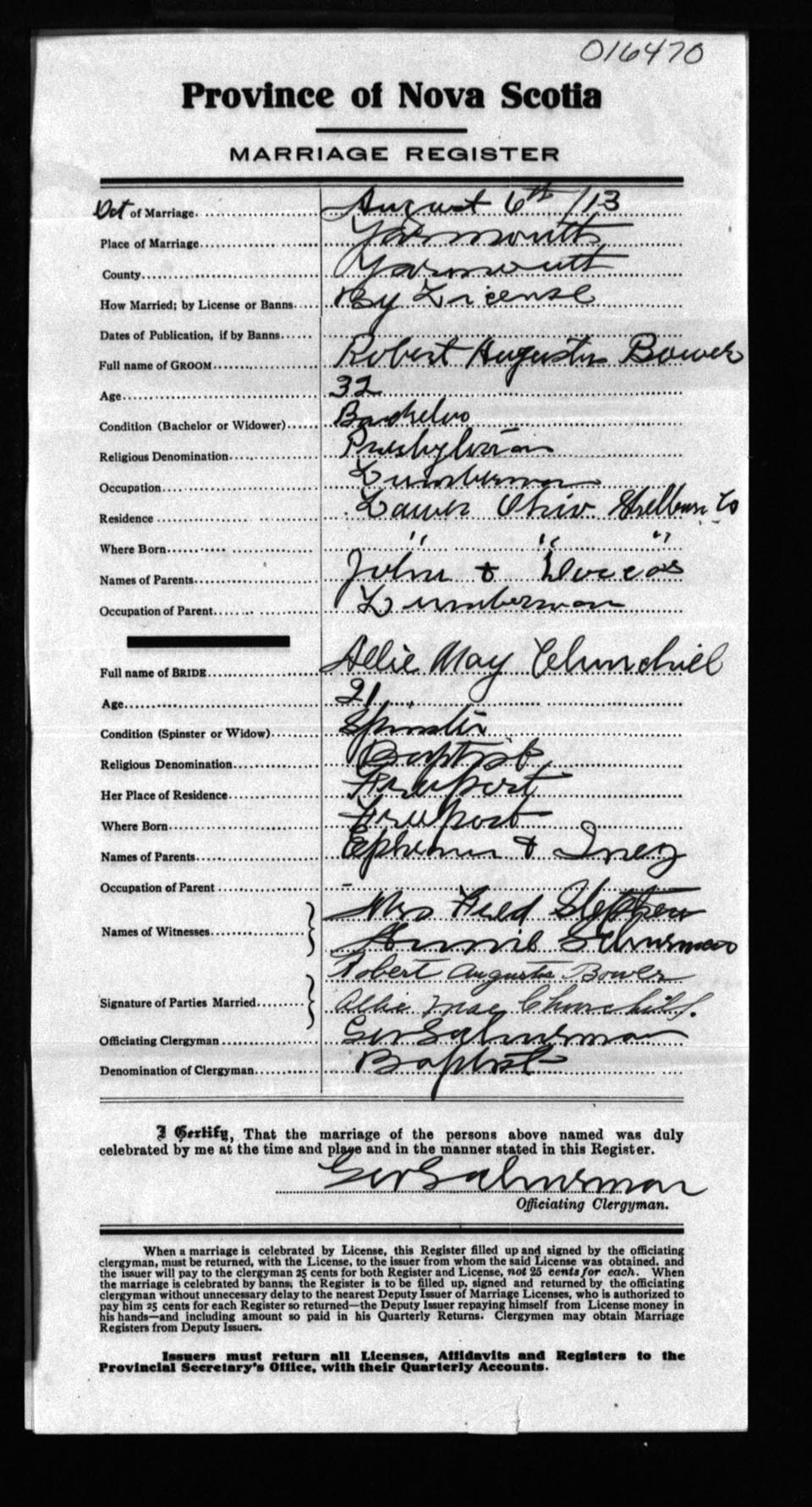 Registration: Year: 1913 number: 16470