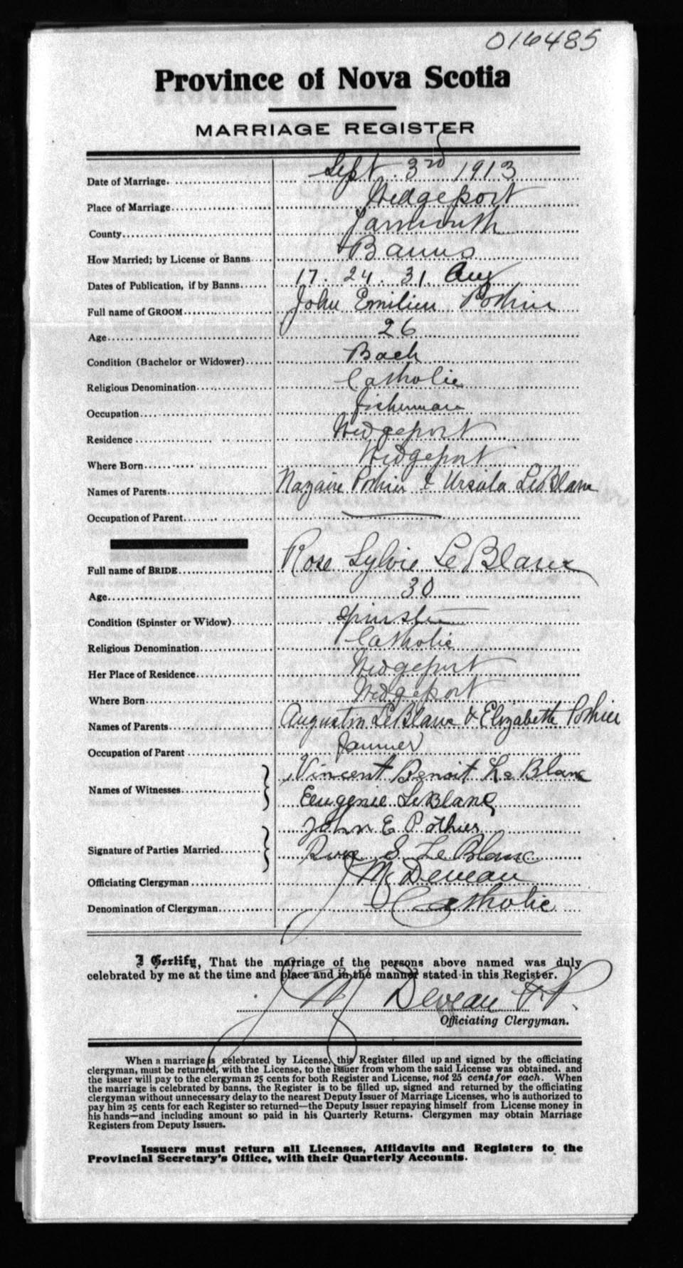 Registration: Year: 1913 number: 16485