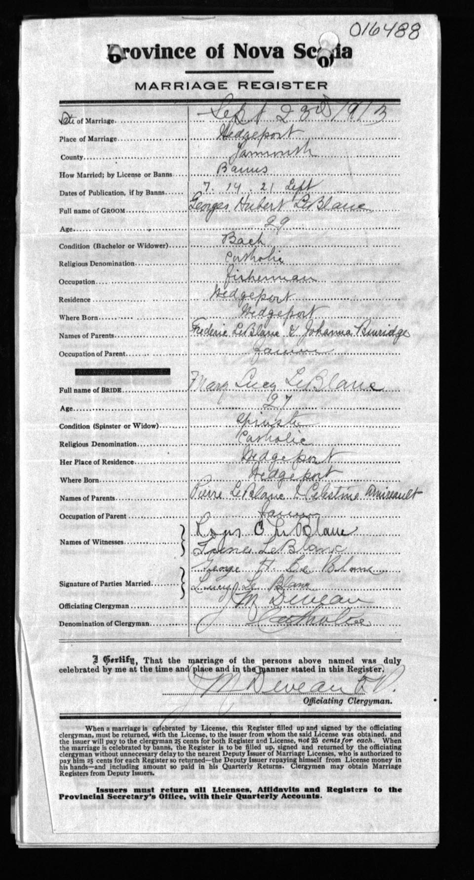 Registration: Year: 1913 number: 16488