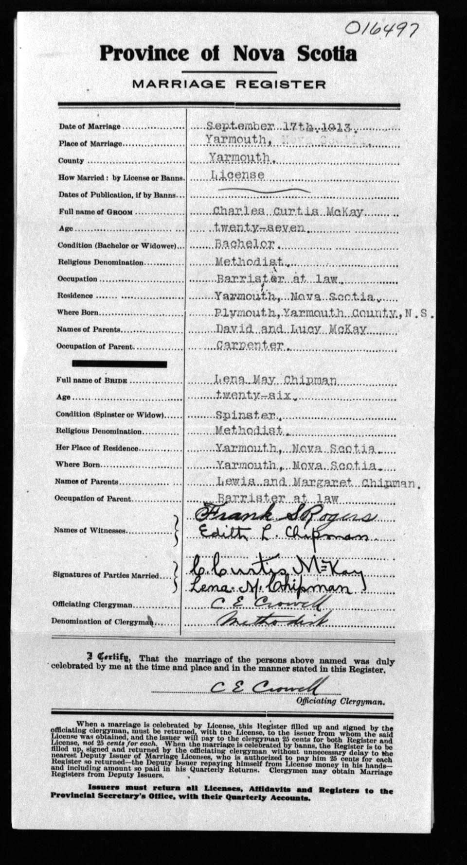 Registration: Year: 1913 number: 16497