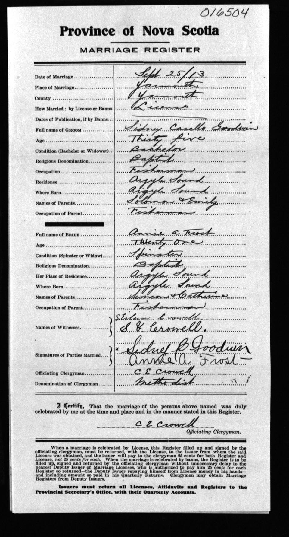 Registration: Year: 1913 number: 16504