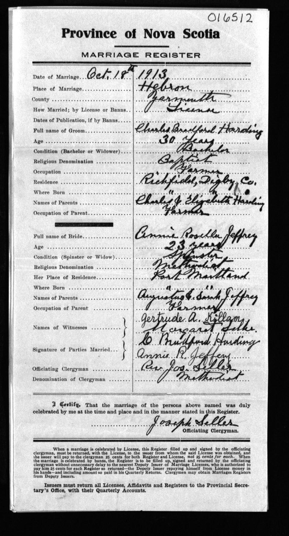Registration: Year: 1913 number: 16512