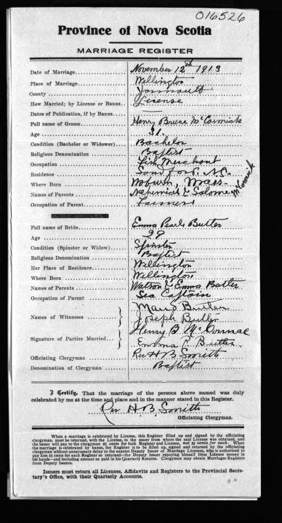Registration: Year: 1913 number: 16526