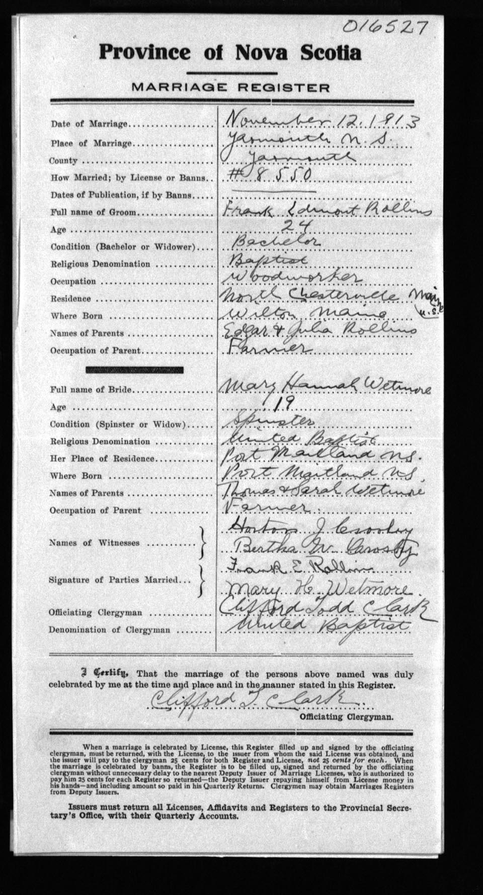 Registration: Year: 1913 number: 16527