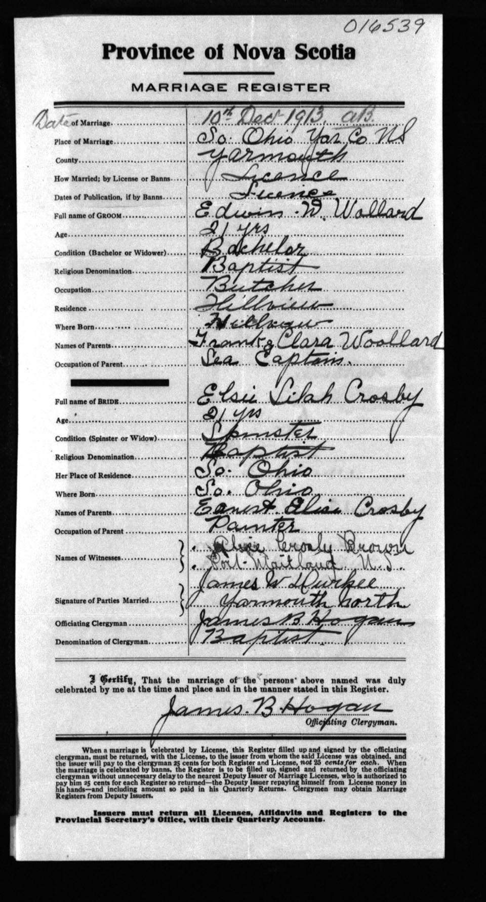 Registration: Year: 1913 number: 16539