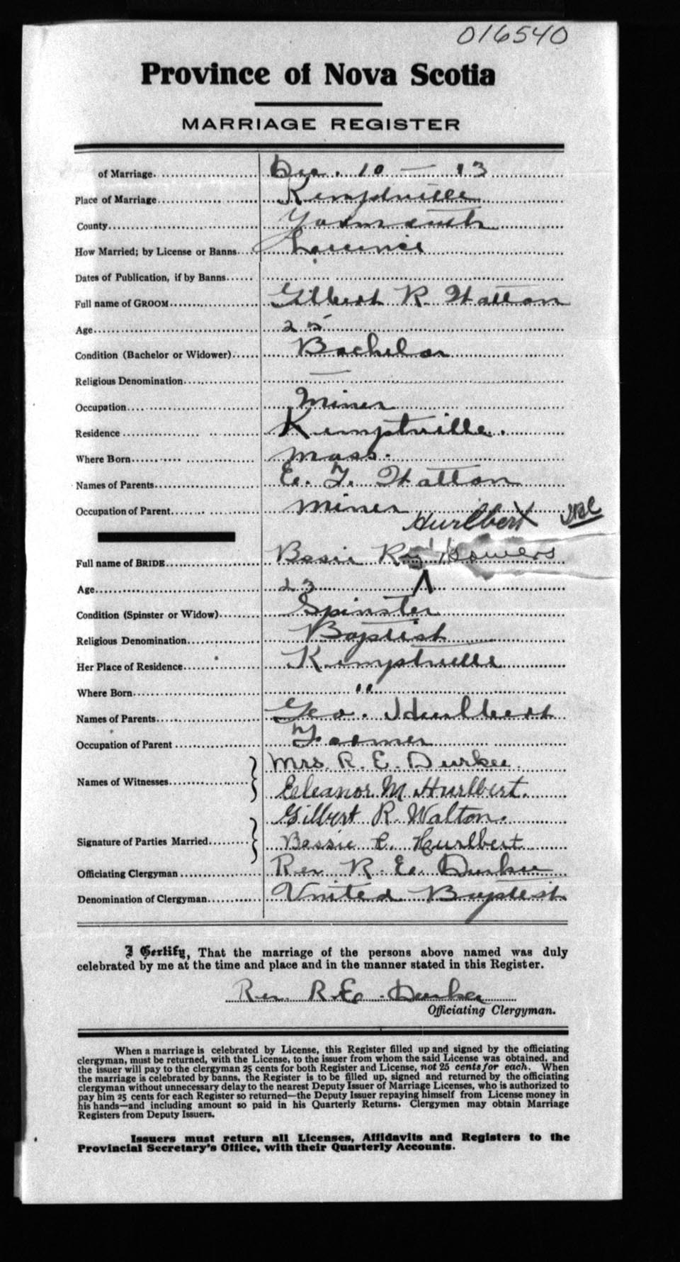 Registration: Year: 1913 number: 16540