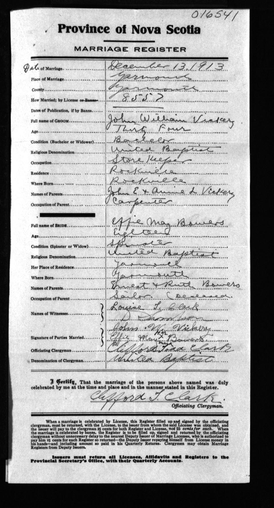Registration: Year: 1913 number: 16541