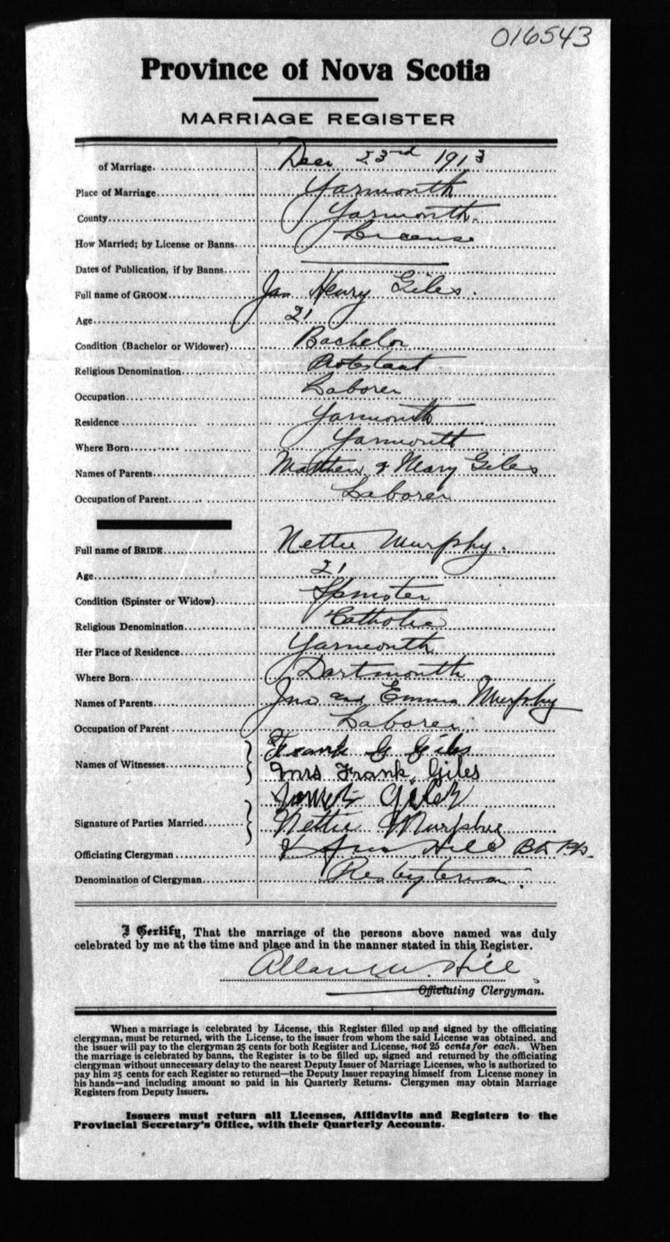 Registration: Year: 1913 number: 16543