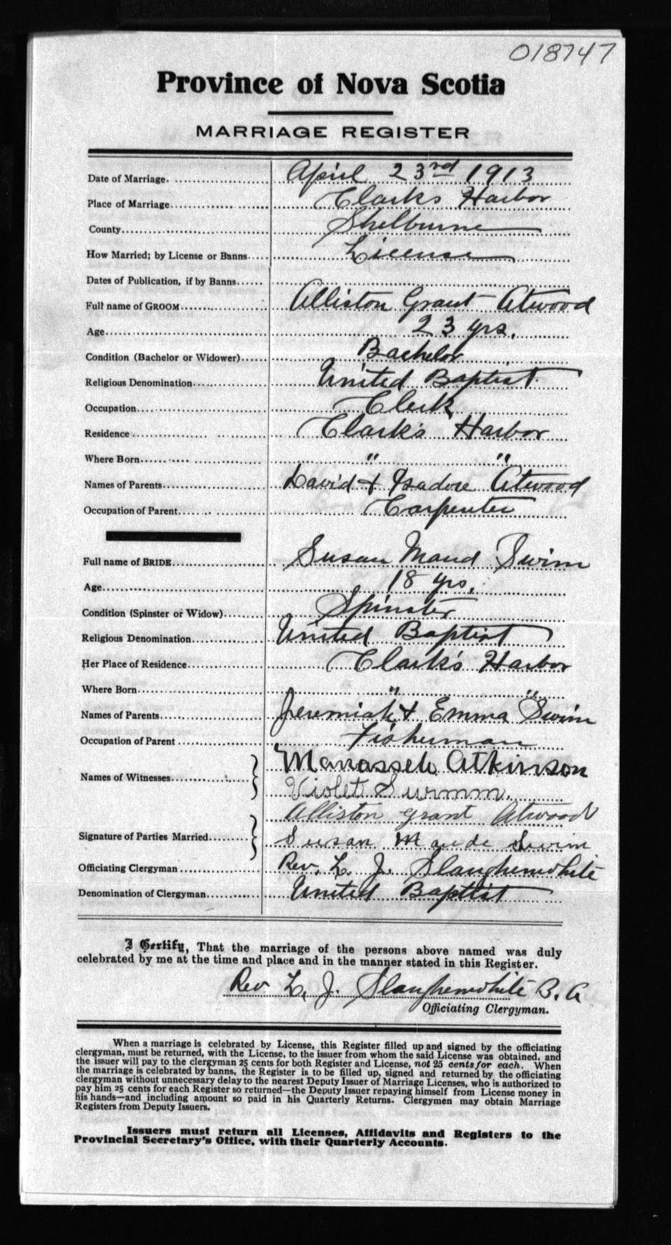Registration: Year: 1913 number: 18747
