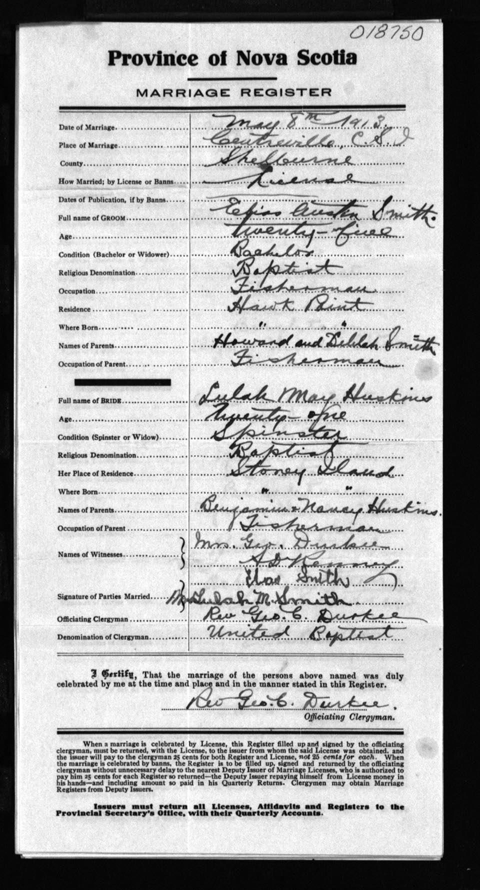 Registration: Year: 1913 number: 18750
