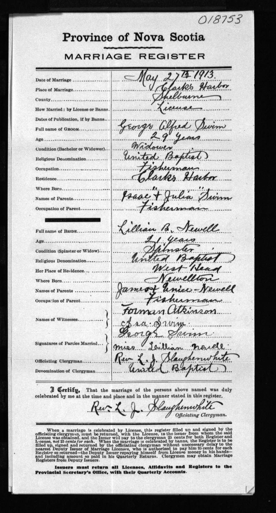 Registration: Year: 1913 number: 18753