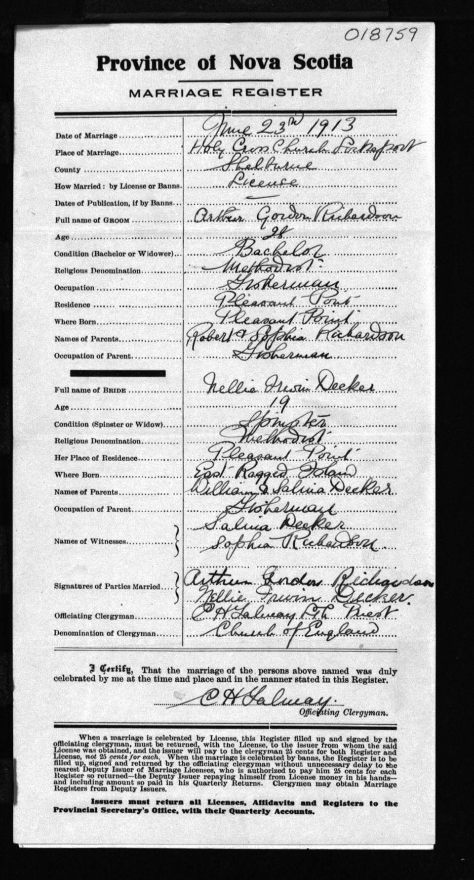 Registration: Year: 1913 number: 18759