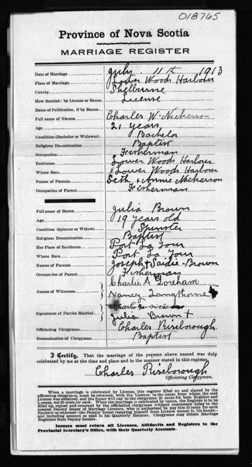 Registration: Year: 1913 number: 18765