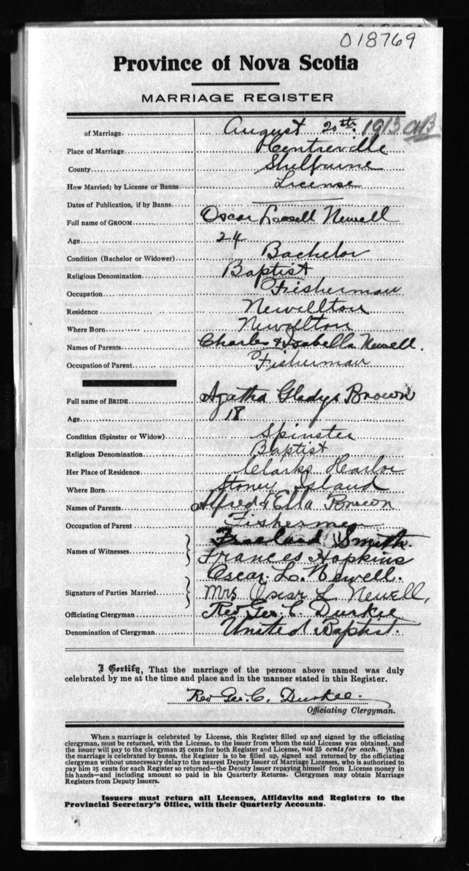 Registration: Year: 1913 number: 18769