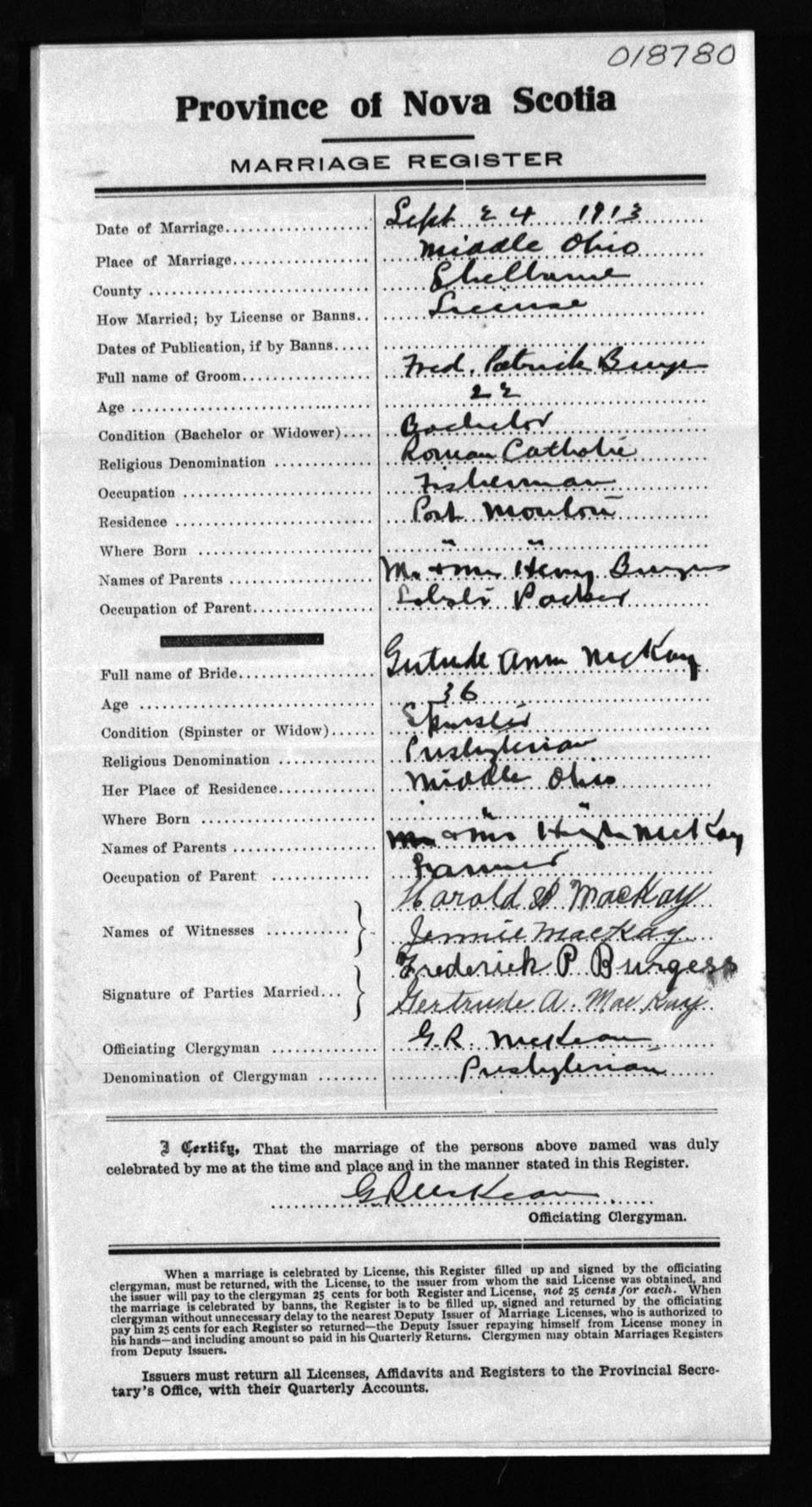 Registration: Year: 1913 number: 18780