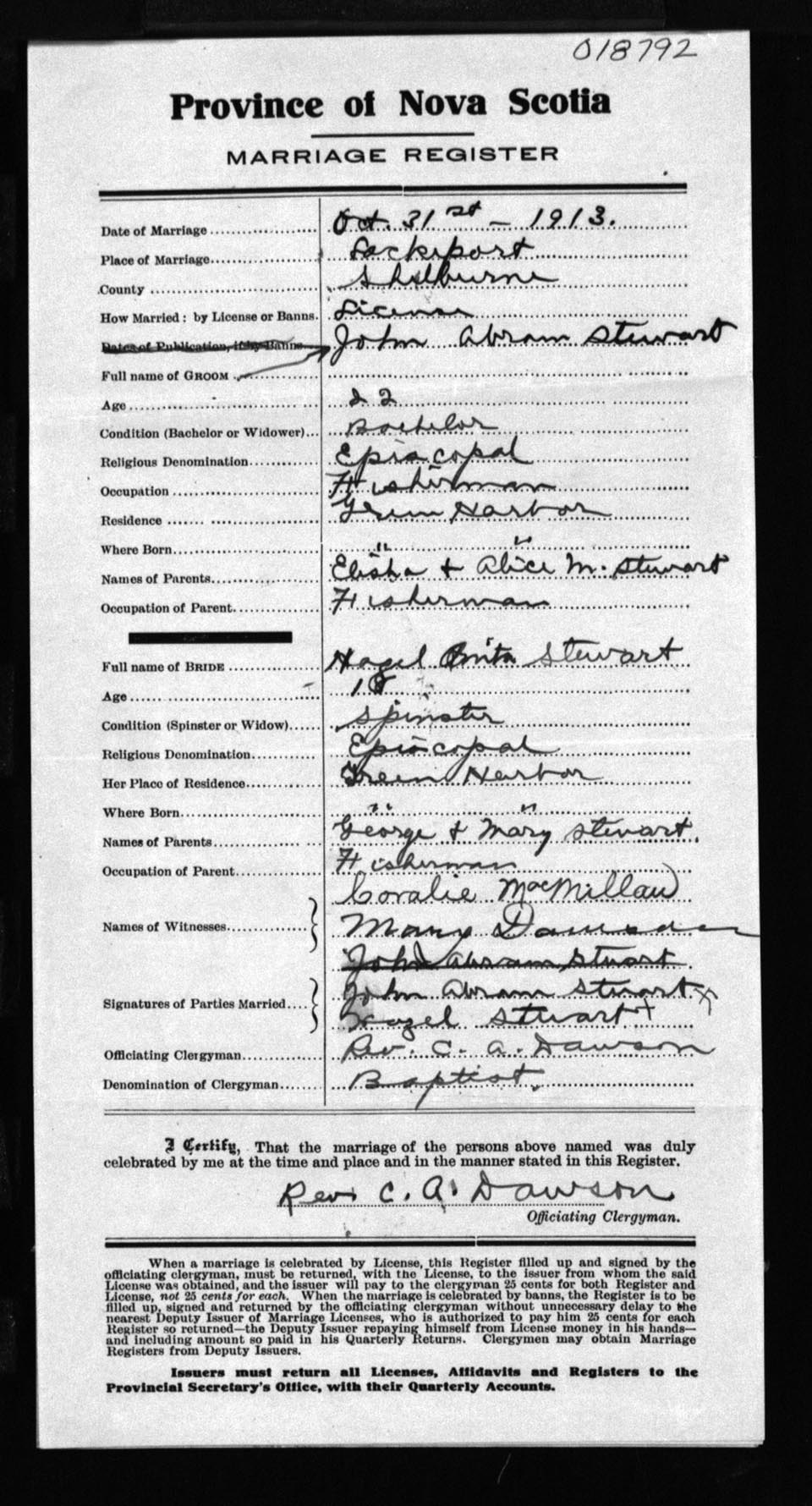 Registration: Year: 1913 number: 18792