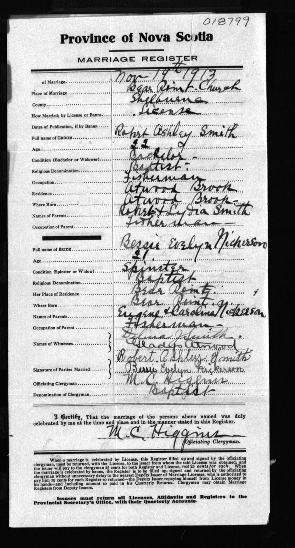 Registration: Year: 1913 number: 18799