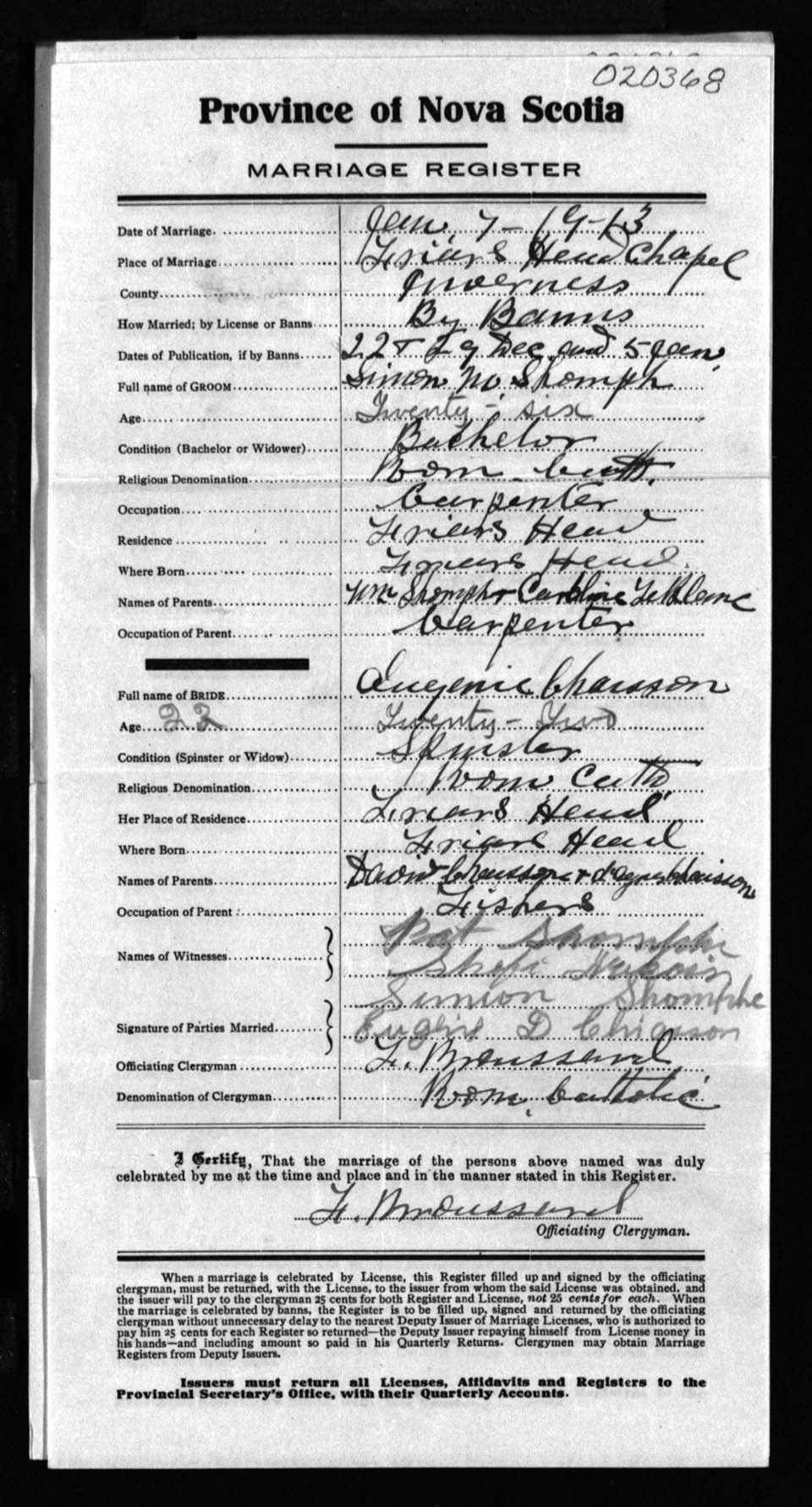 Registration: Year: 1913 number: 20368