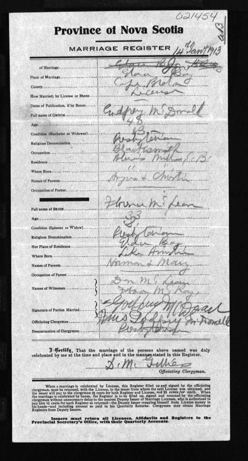 Registration: Year: 1913 number: 21454