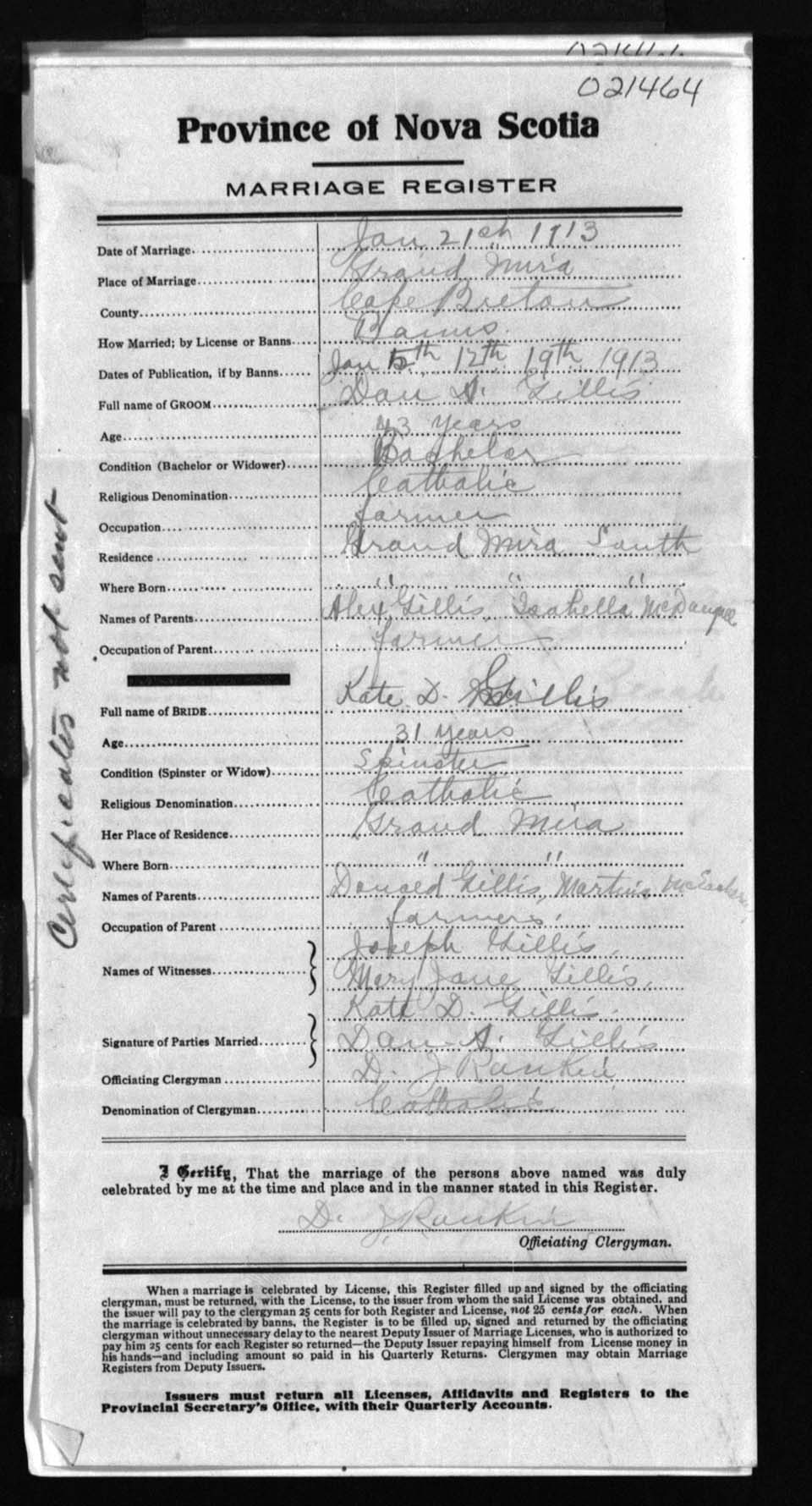 Registration: Year: 1913 number: 21464