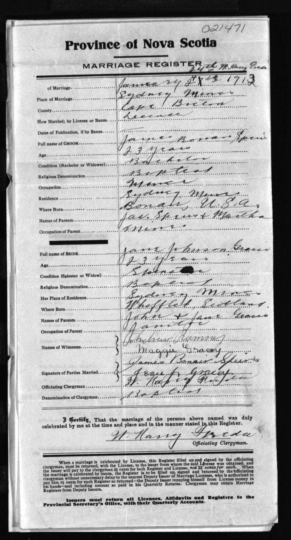 Registration: Year: 1913 number: 21471