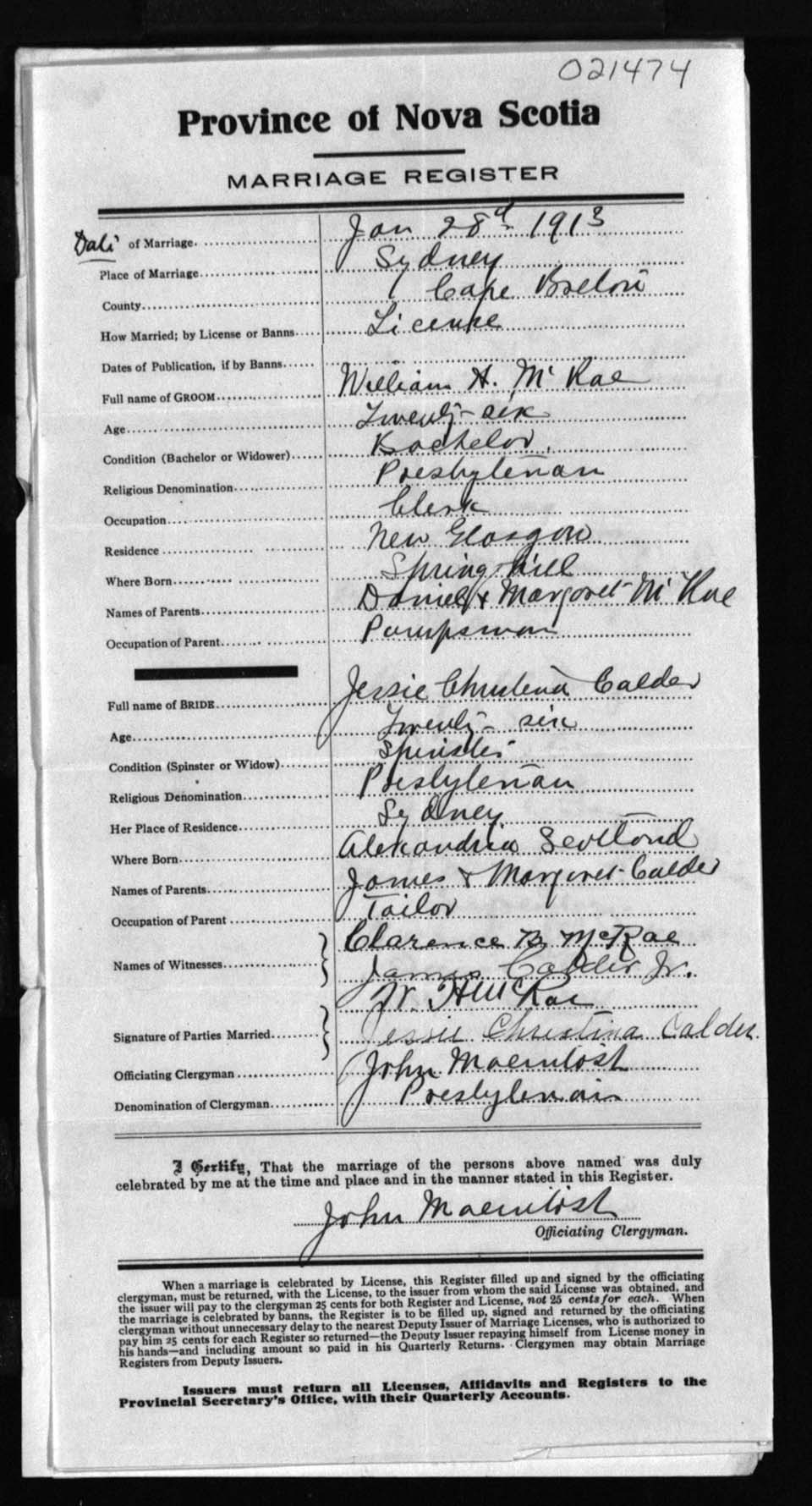 Registration: Year: 1913 number: 21474
