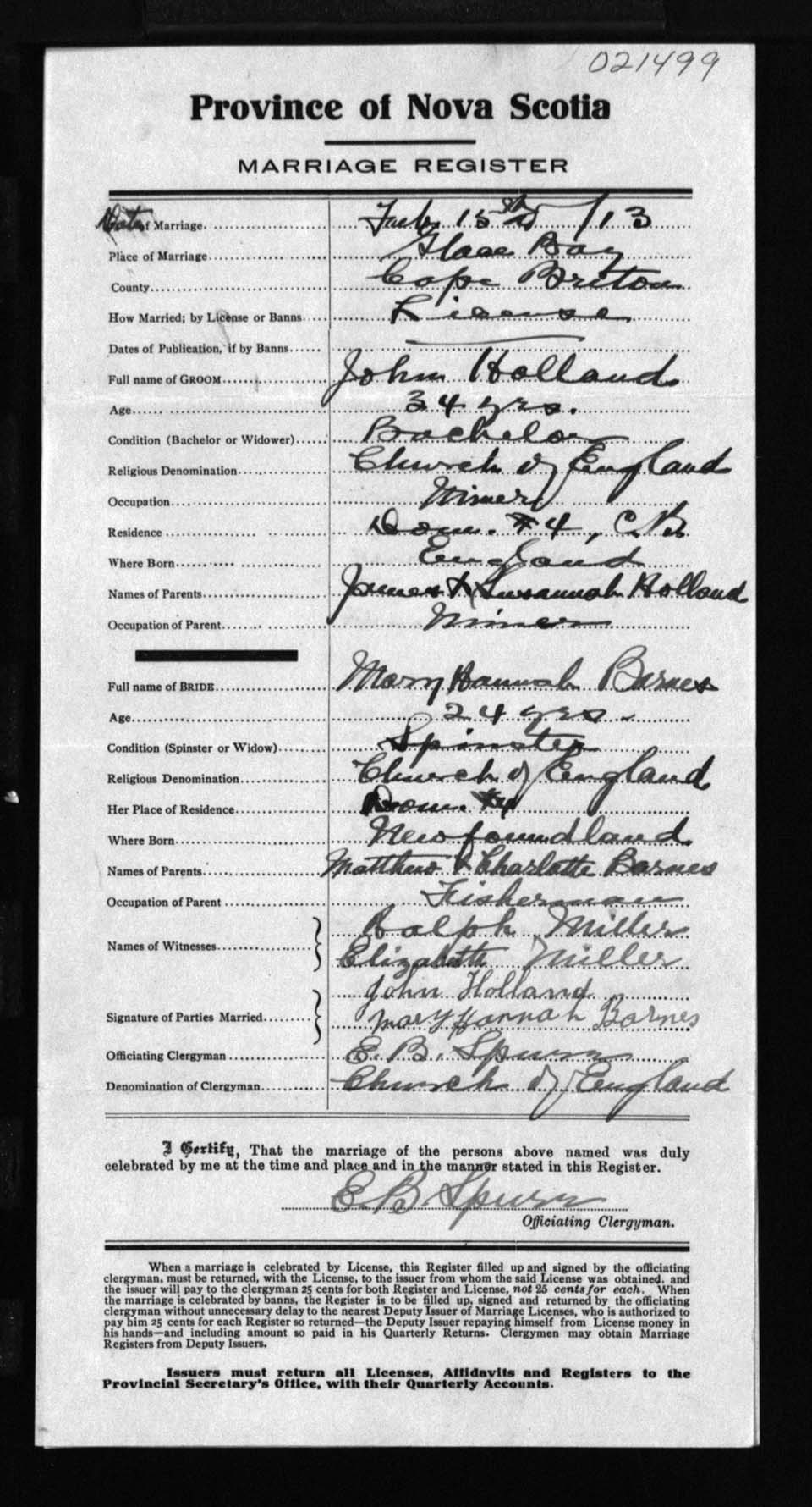 Registration: Year: 1913 number: 21499