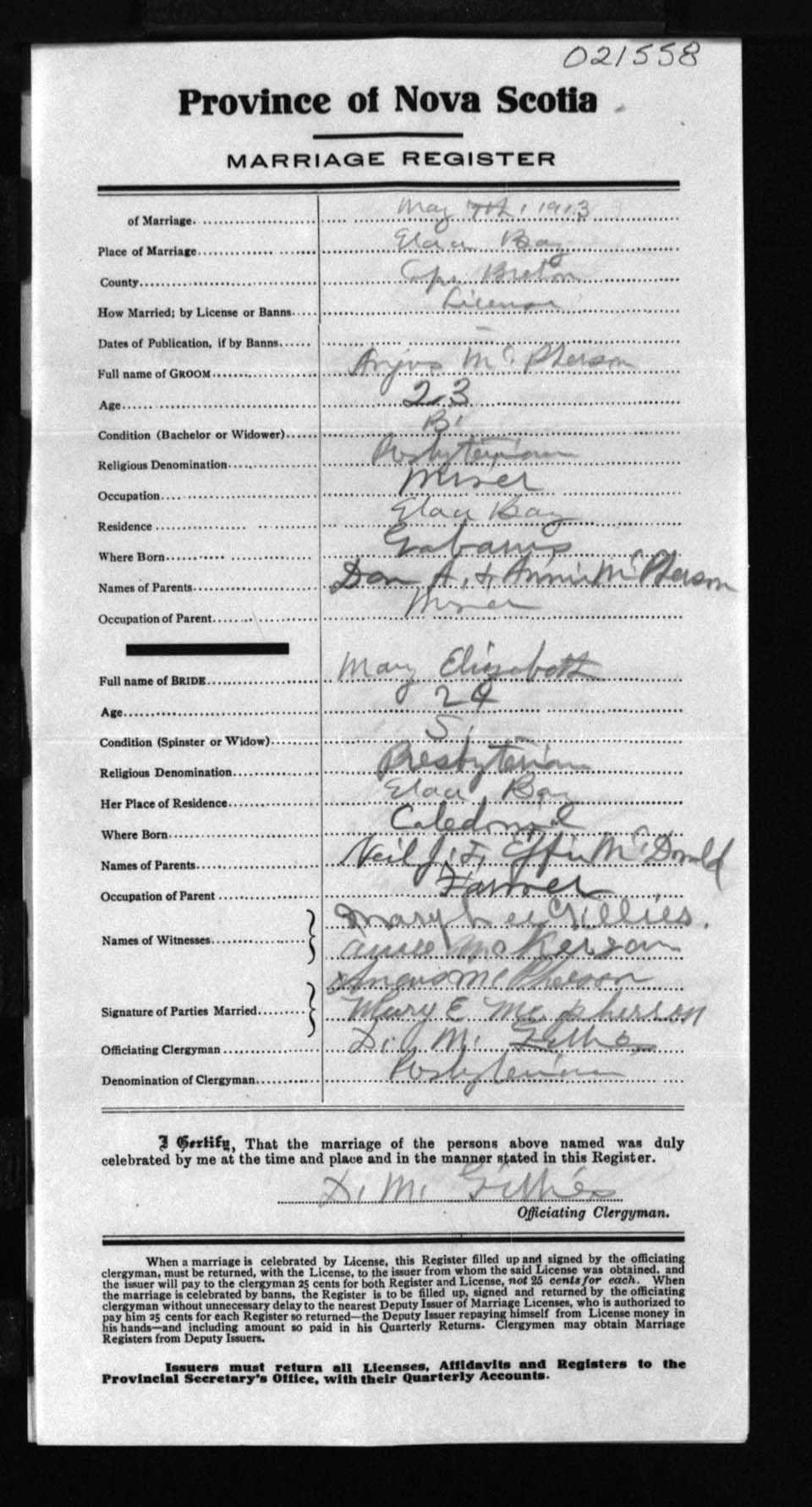 Registration: Year: 1913 number: 21558