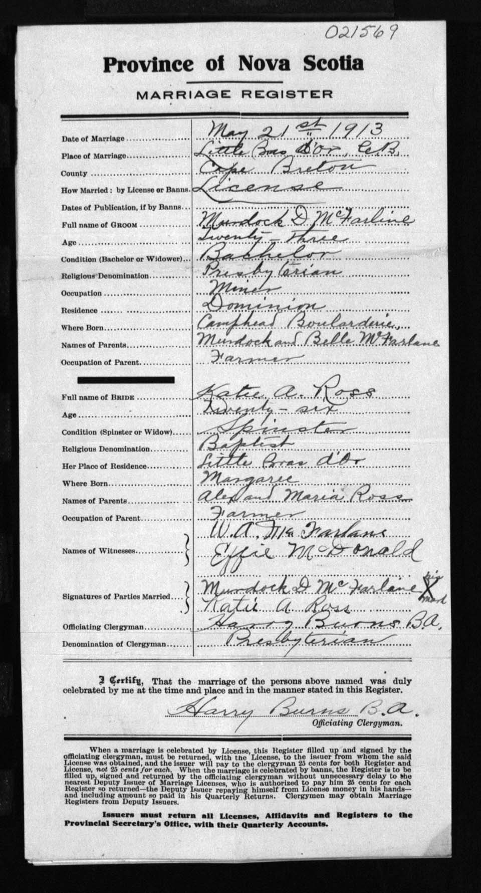 Registration: Year: 1913 number: 21569