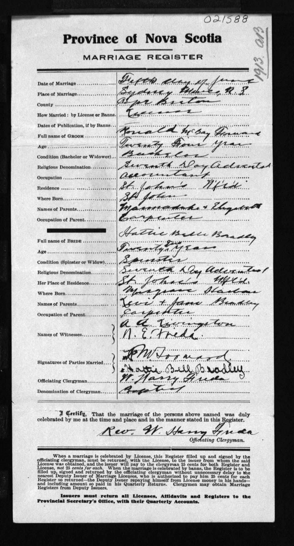 Registration: Year: 1913 number: 21588
