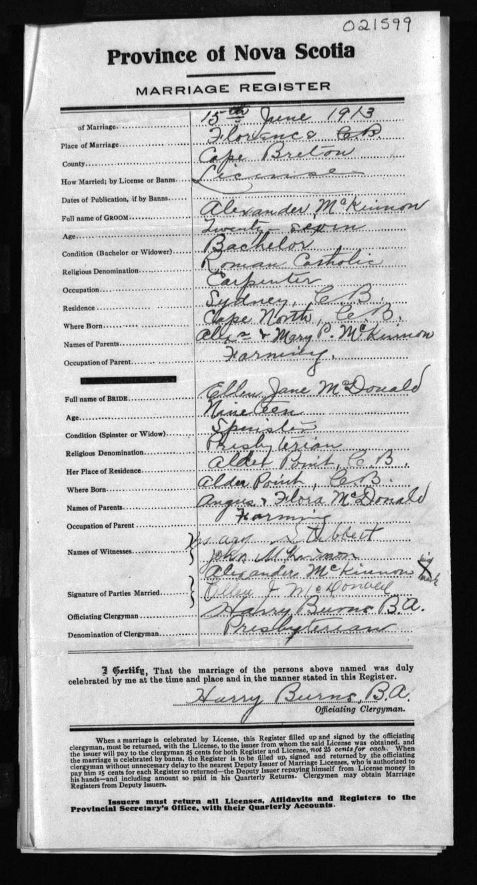 Registration: Year: 1913 number: 21599