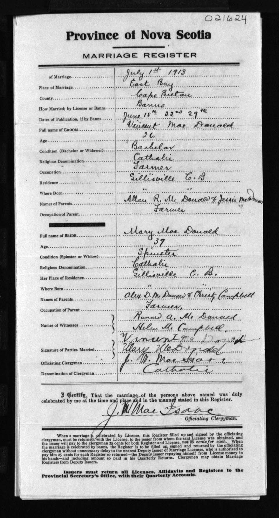 Registration: Year: 1913 number: 21624