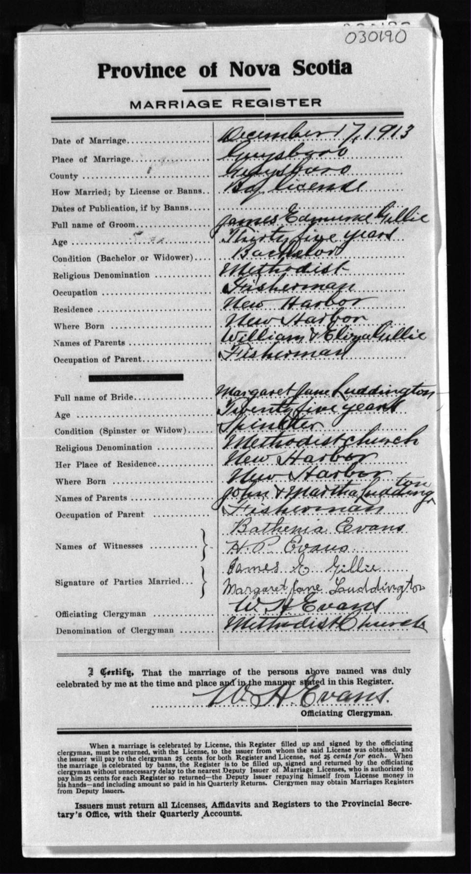 Registration: Year: 1913 number: 30190