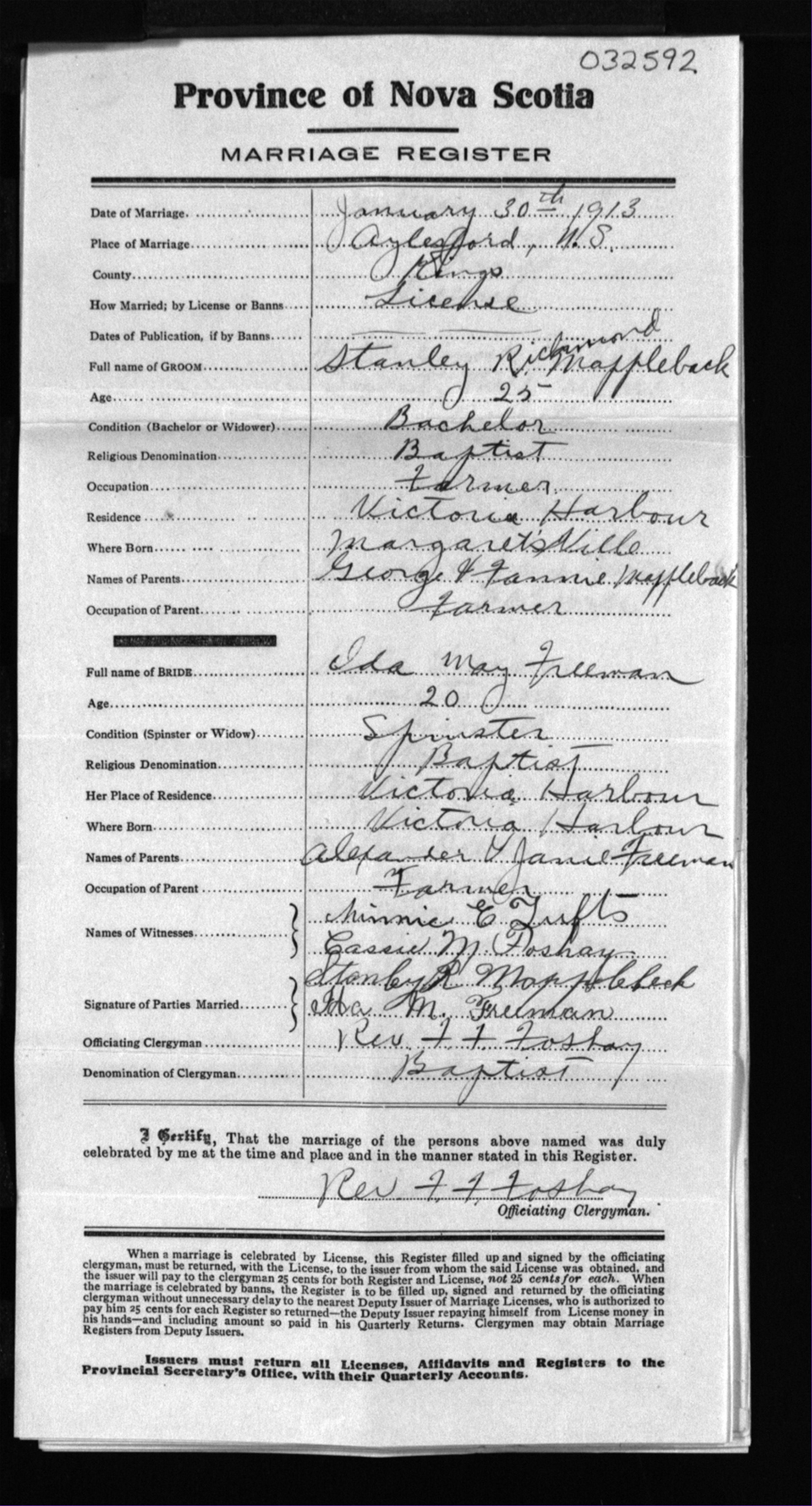 Registration: Year: 1913 number: 32592