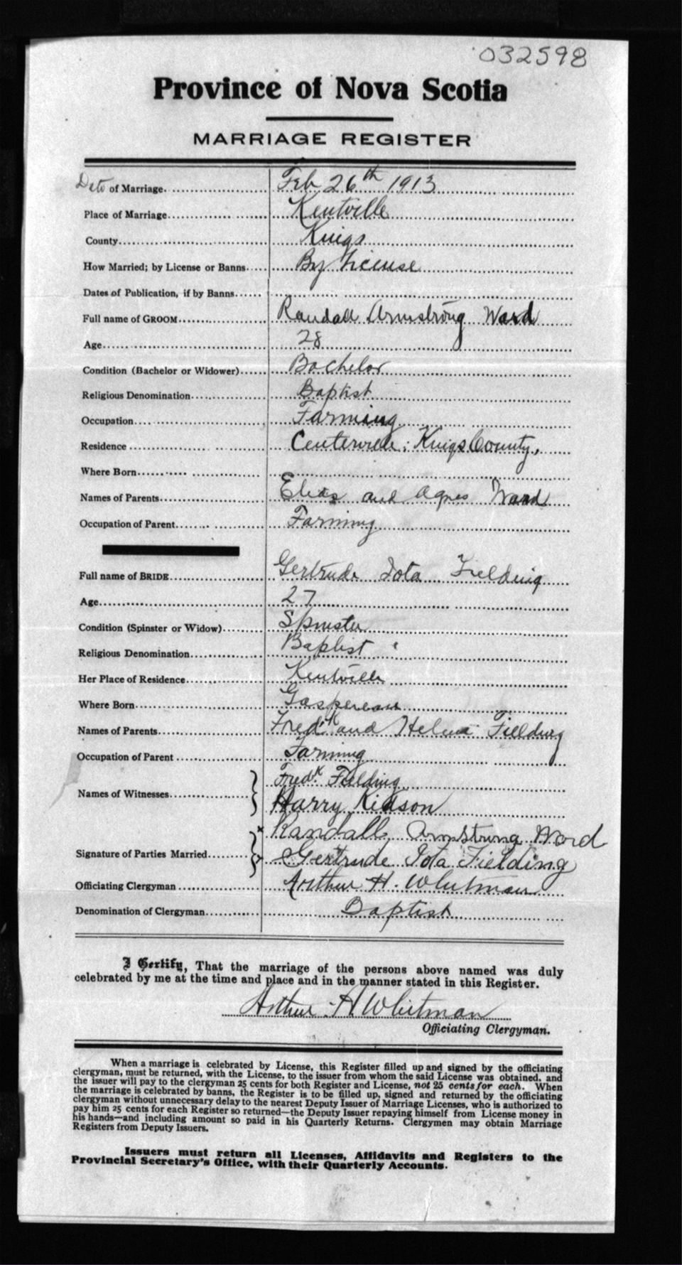Registration: Year: 1913 number: 32598