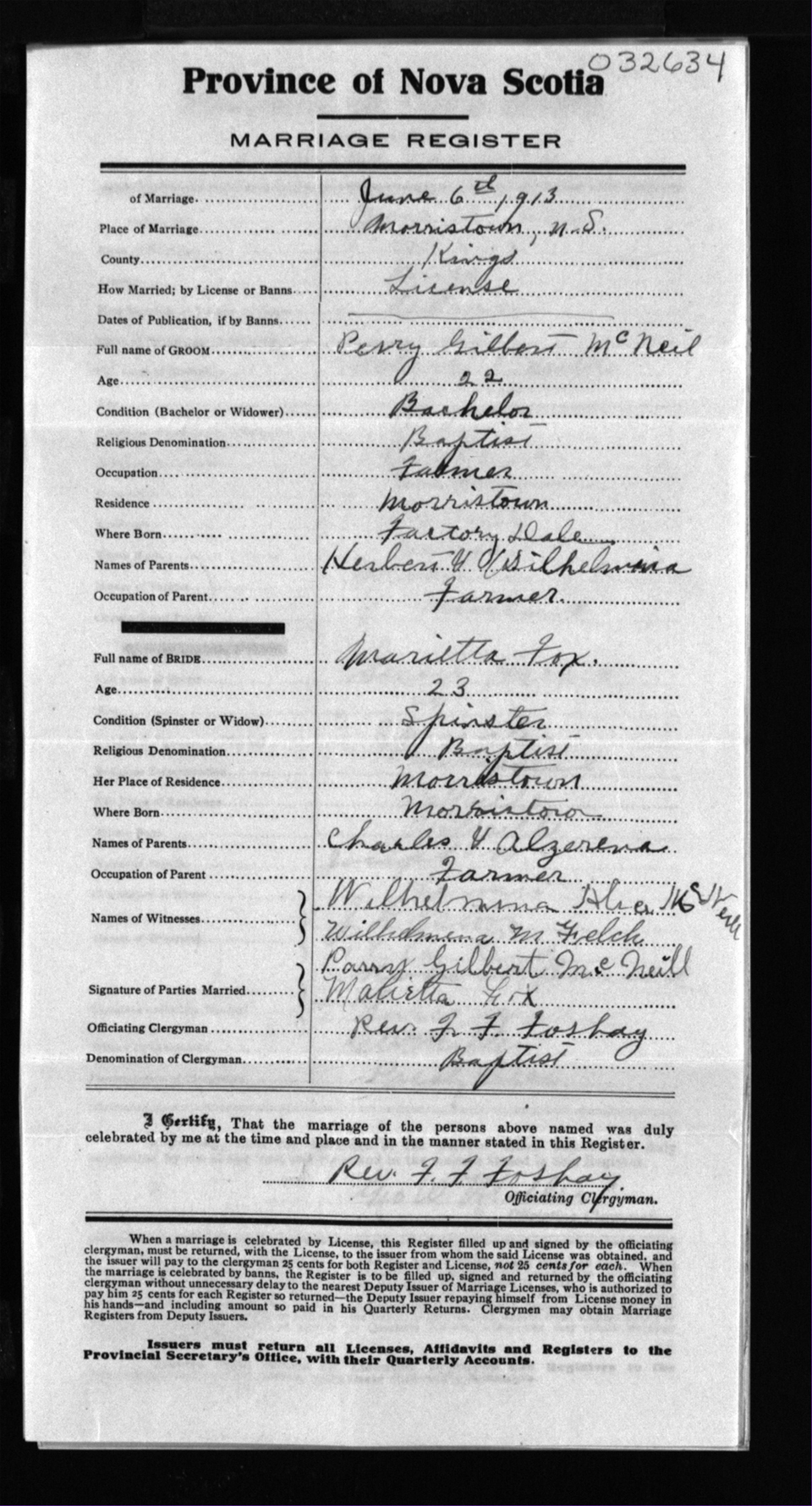 Registration: Year: 1913 number: 32634