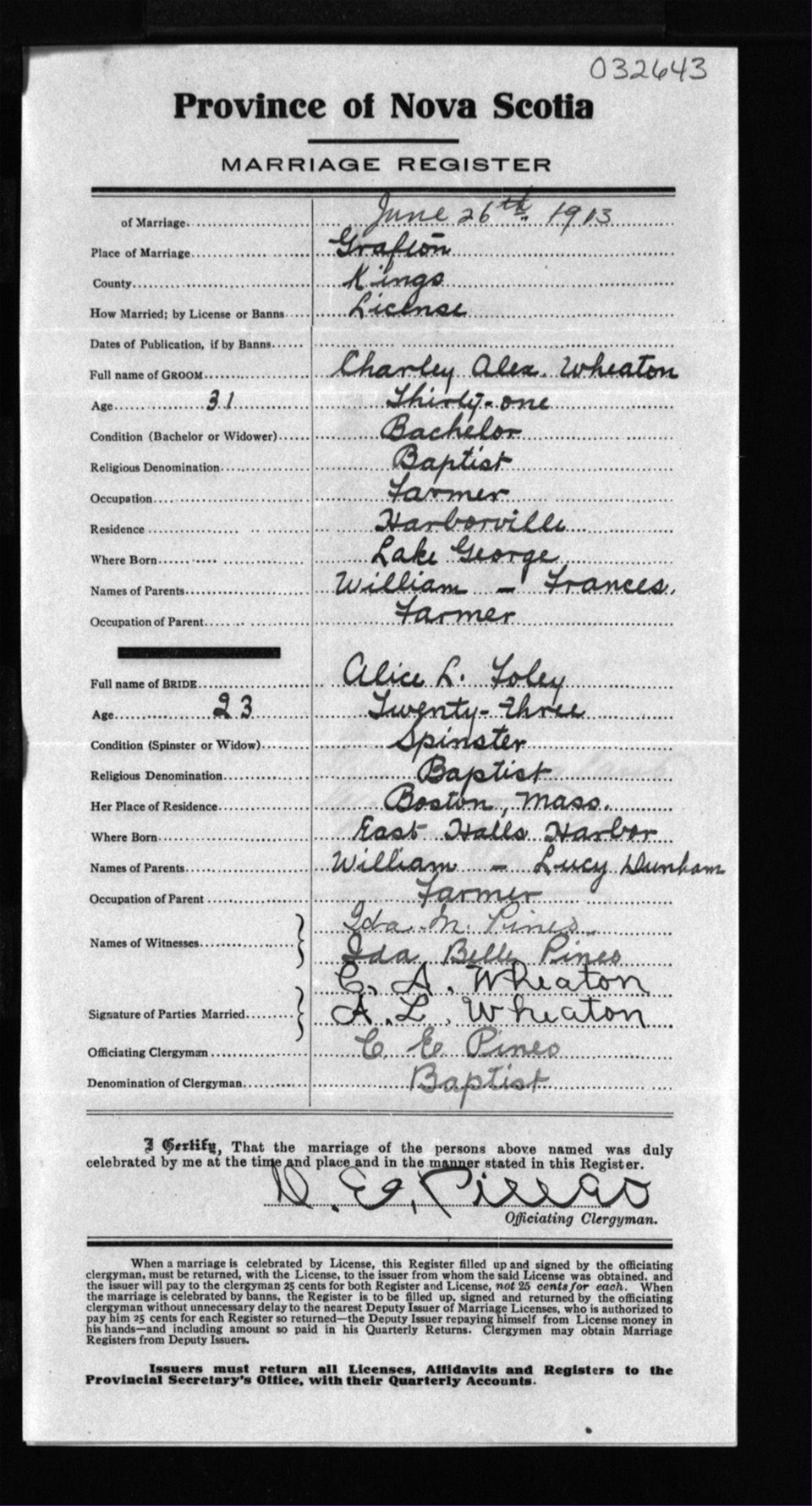 Registration: Year: 1913 number: 32643