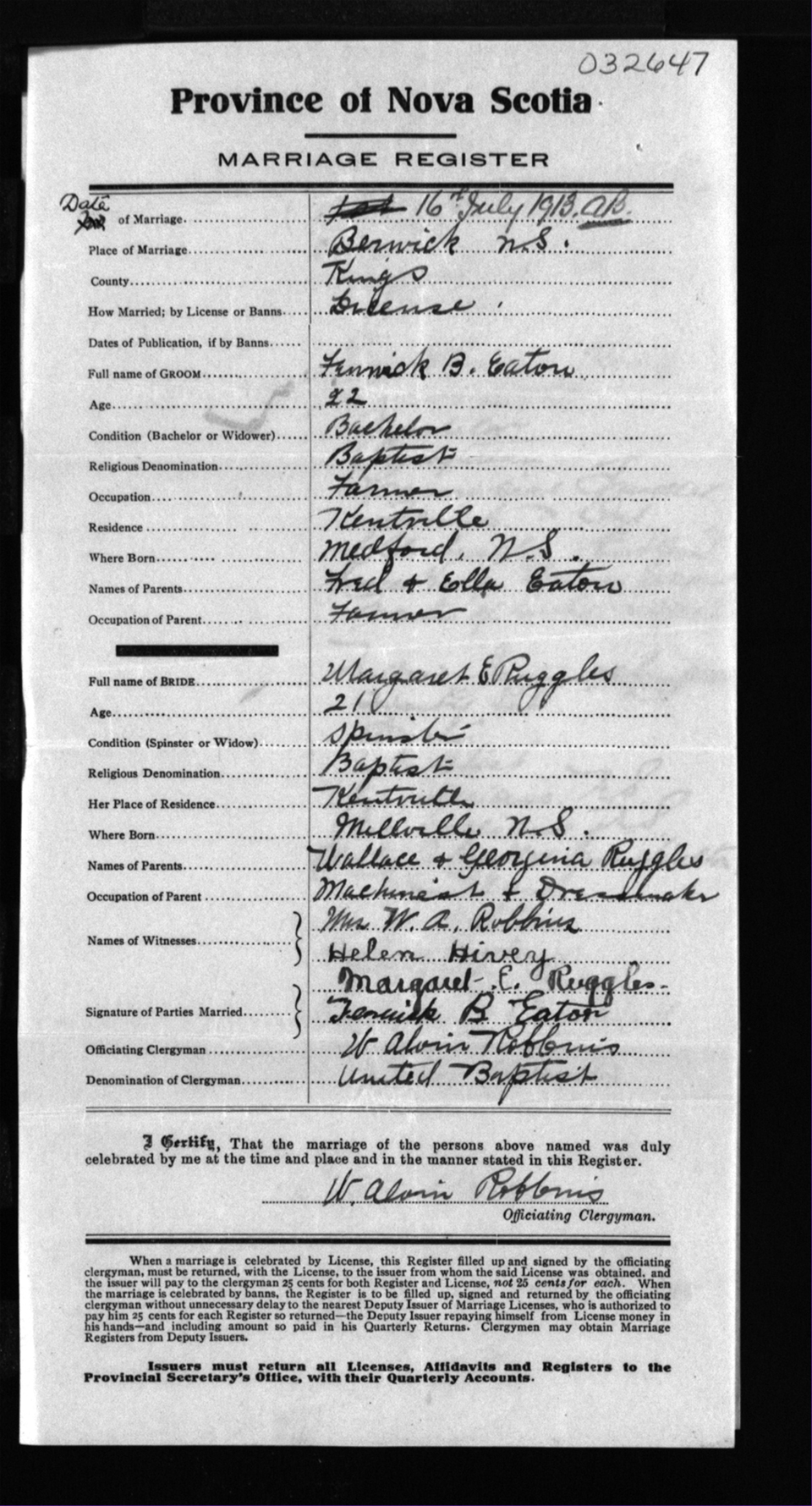 Registration: Year: 1913 number: 32647