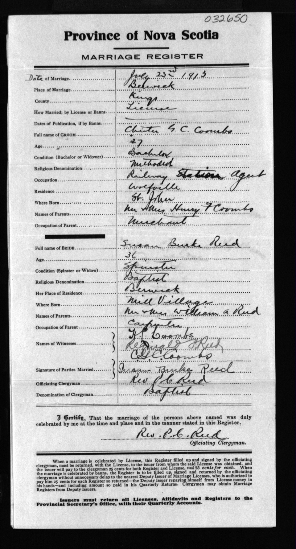Registration: Year: 1913 number: 32650