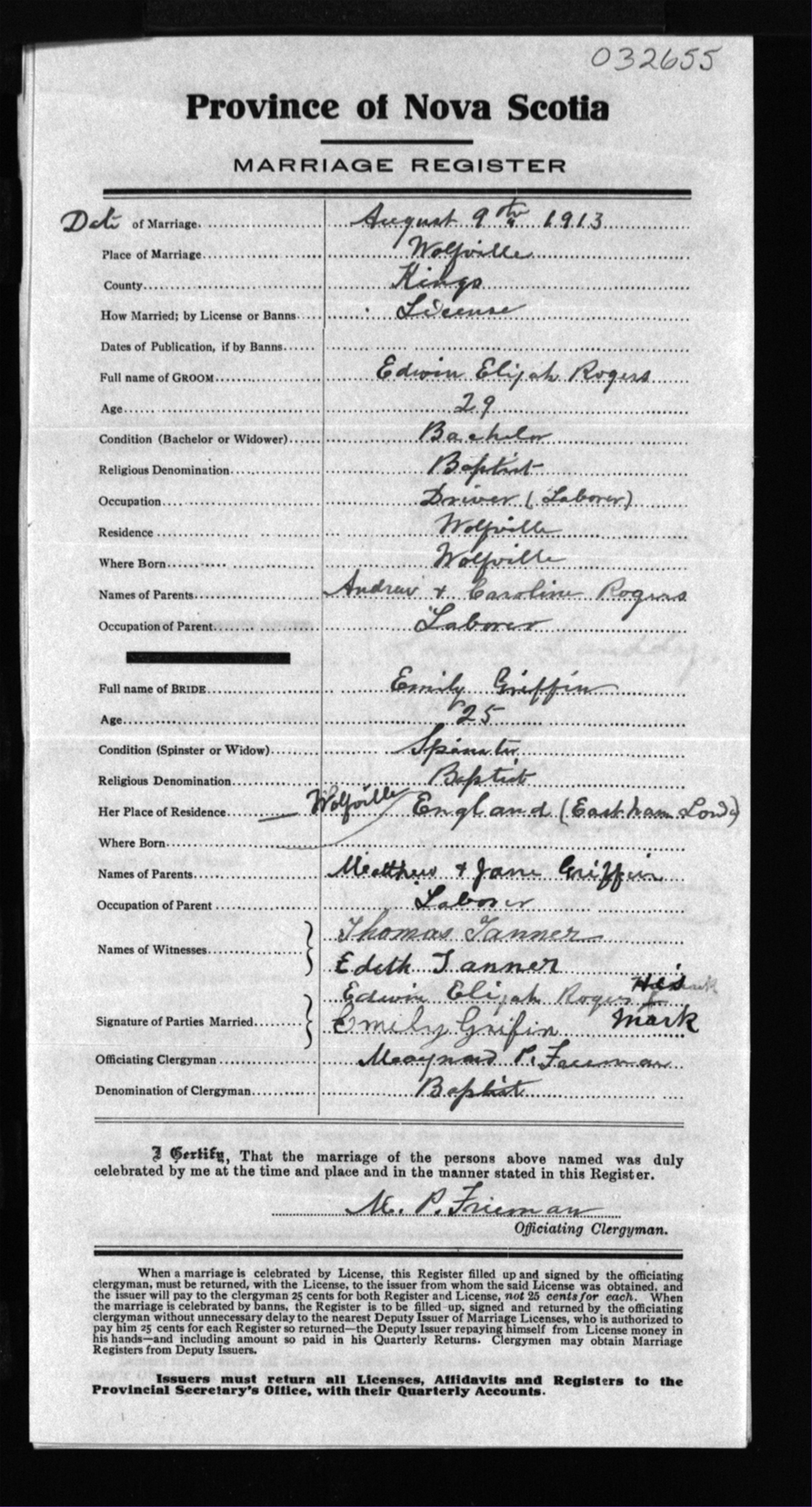 Registration: Year: 1913 number: 32655