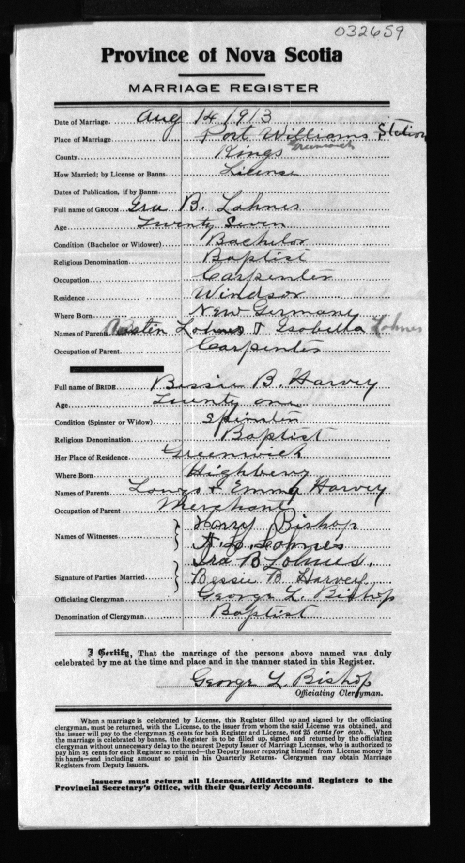 Registration: Year: 1913 number: 32659
