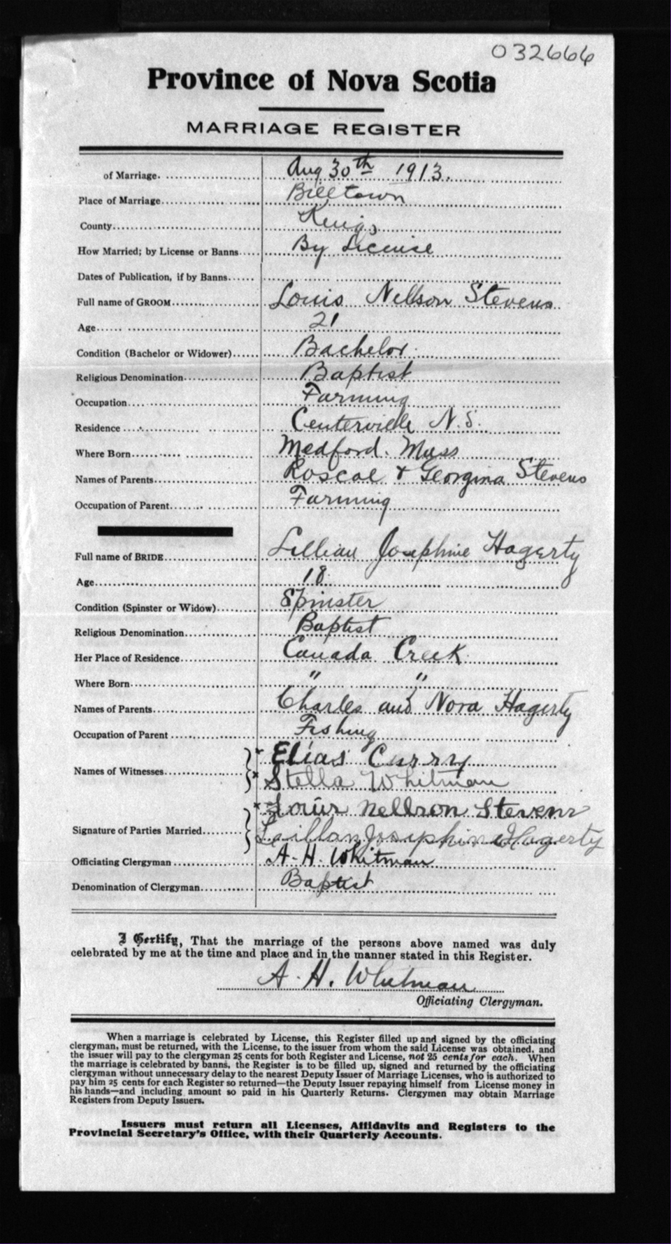 Registration: Year: 1913 number: 32666