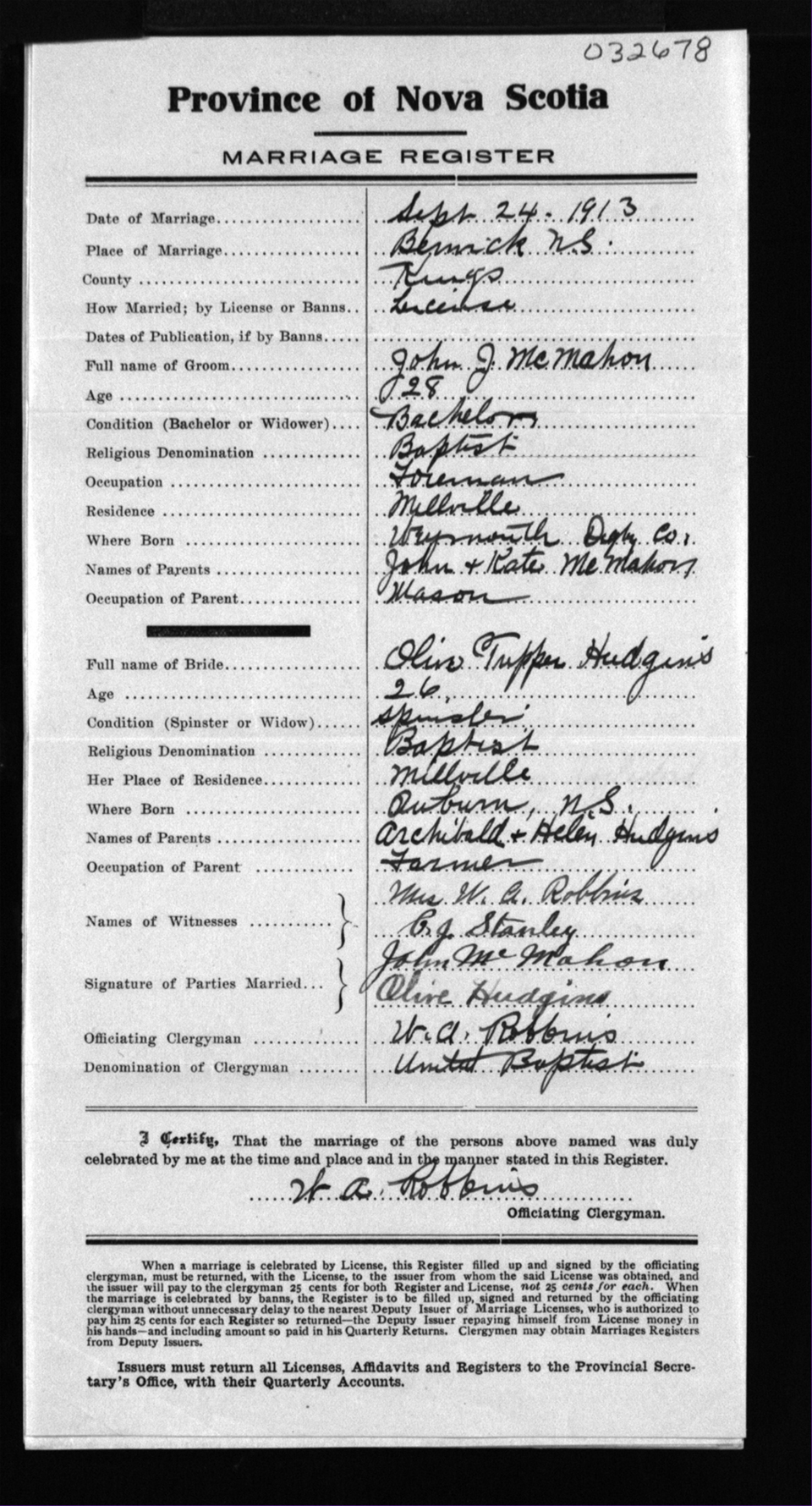 Registration: Year: 1913 number: 32678