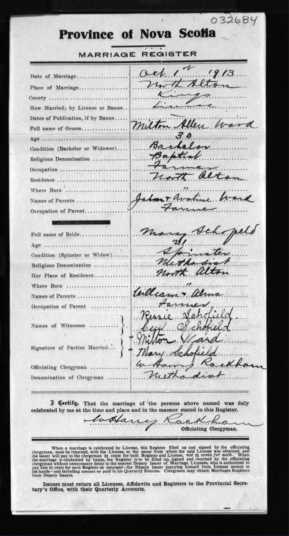 Registration: Year: 1913 number: 32684