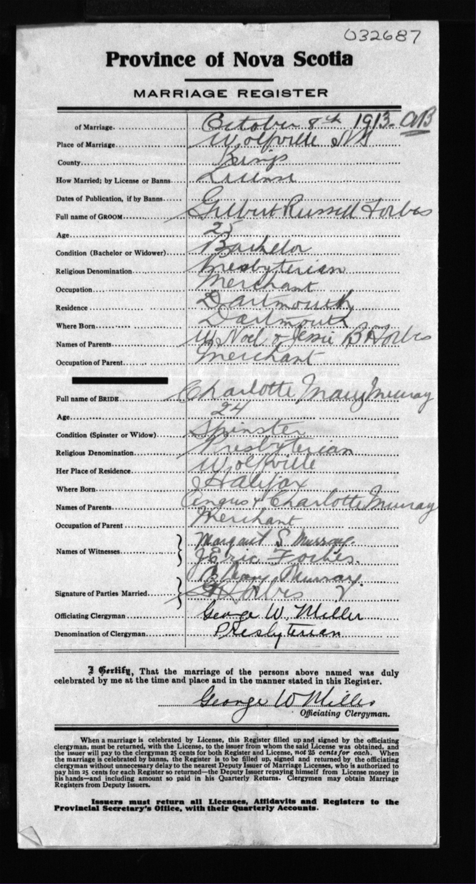 Registration: Year: 1913 number: 32687