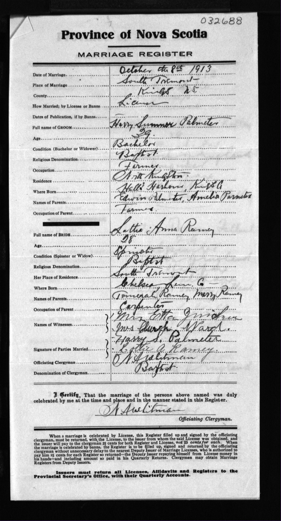 Registration: Year: 1913 number: 32688