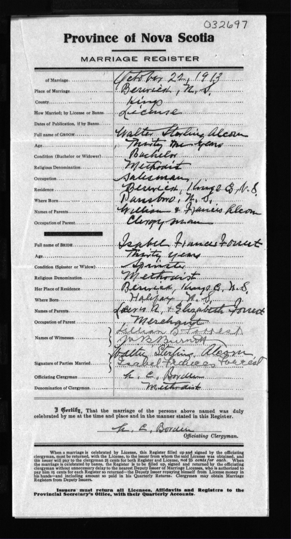 Registration: Year: 1913 number: 32697